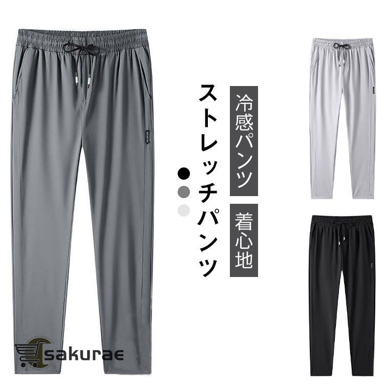メンズ 薄手 2枚セット 男性 大きいサイズ 夏 カジュアルパンツ 通気性 アイスシルクパンツ ストレートパンツ ストレッチ アイスシルクパンツ スウ