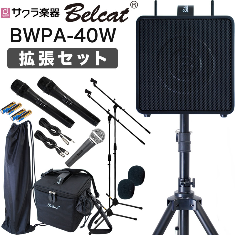 ポータブルPAアンプ Belcat BWPA-40W 拡張セット〔ワイヤレスマイク付属 BWPA40W〕〔カラオケ 演説 講演 イベント 実演販売 ライブ演奏に〕