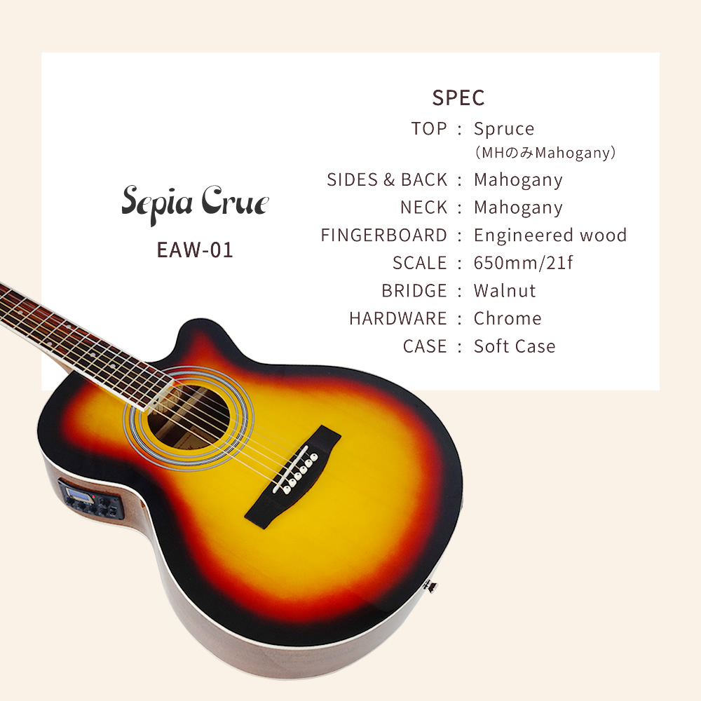 エレアコ Sepia Crue EAW-01 単品〔ソフトケース、シールドケーブル付属〕〔アコギ アコースティックギター セピアクルー EAW01〕〔大型荷物〕