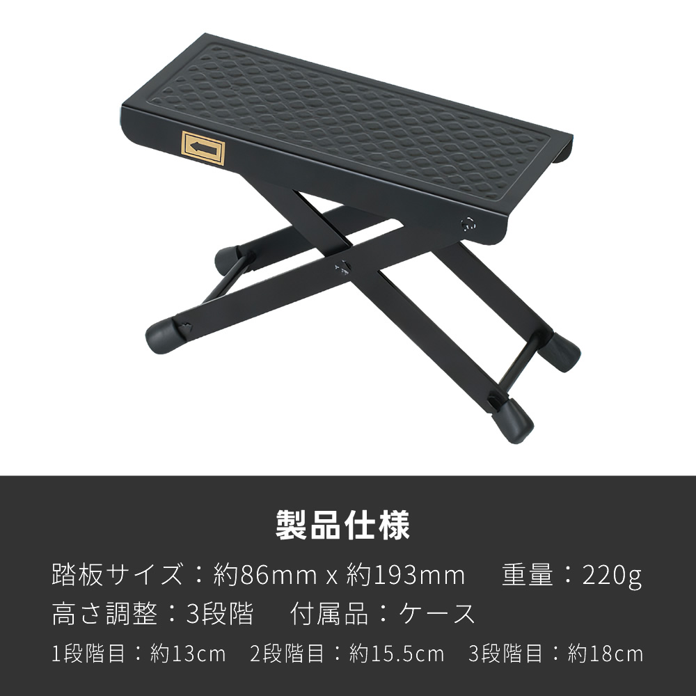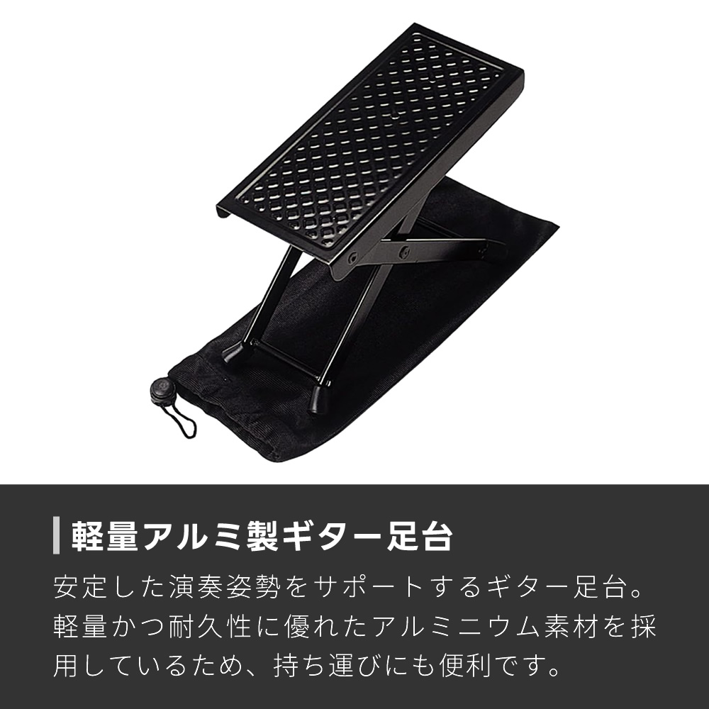 アルミ製ギター足台 GF-1800〔軽量 サポート ケース付属 高さ調節3段 フットレスト フットスツール クラシックギター GF1800〕〔ゆうパケット対応〕