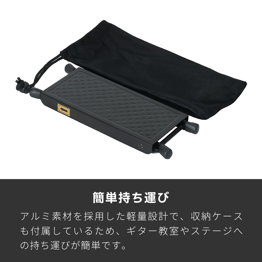 クラシックギター演奏用のアルミ製小型軽量ギター足台(袋付)。