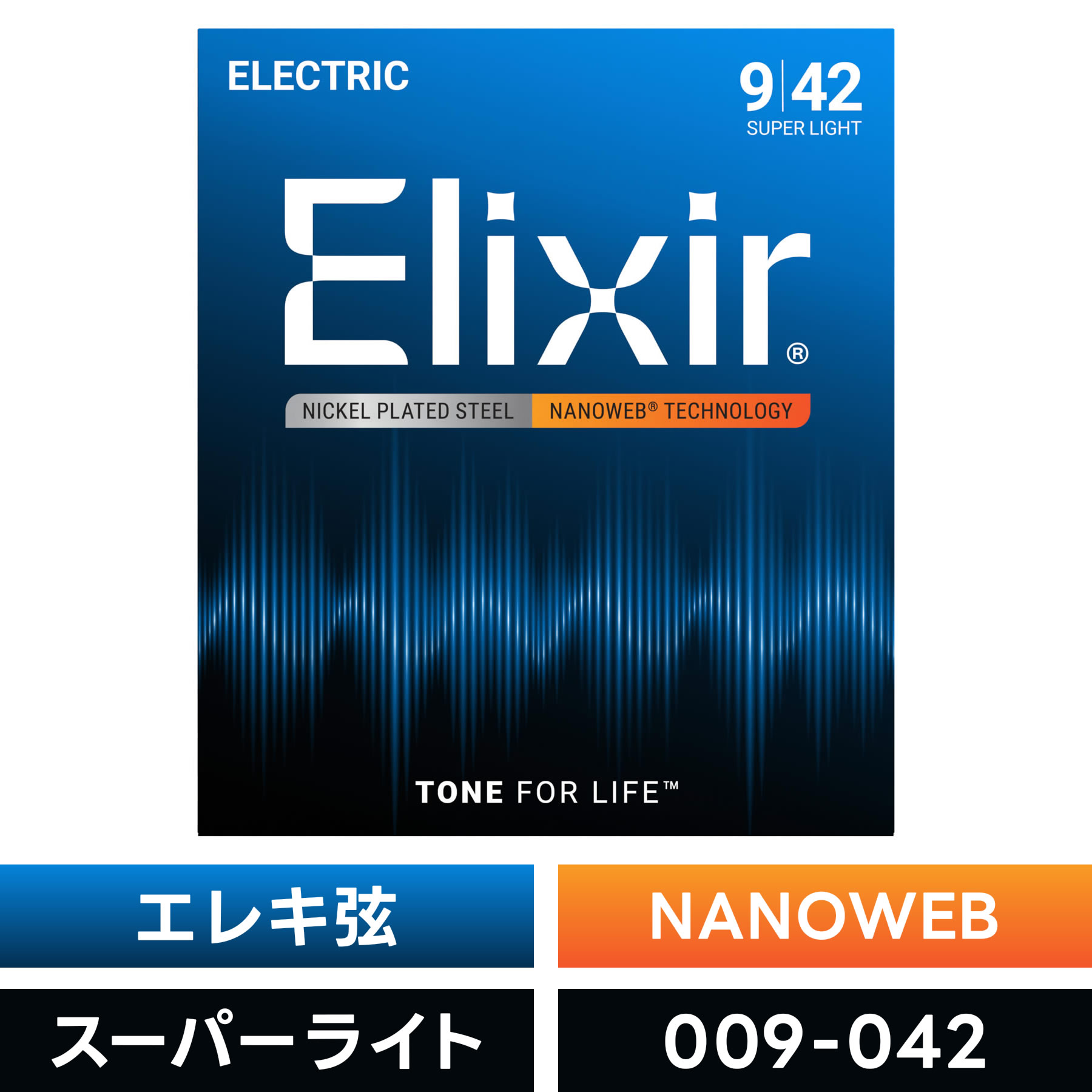 Elixir エリクサー エレキギター弦 ナノウェブ Super Light #12002〔.009-.042〕〔エレキ弦 NANOWEB〕〔ゆうパケット対応〕