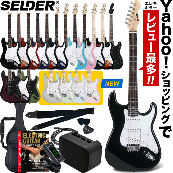 エレキギター入門セットの決定版 SELDER ST-16。エレキギターランキング上位常連の超定番初心者セットです。きらびやかなで明瞭なサウンドはどんな音楽ジャンルにも適応するまさにエレキギターの王道的サウンド。非常に軽量、かつ人間工学に基づき設計されたシェイプは初心者にも大変おすすめです。豊富なカラーバリエーションの中からあなた好みのエレキギターで最高のギターライフをはじめちゃおう!
