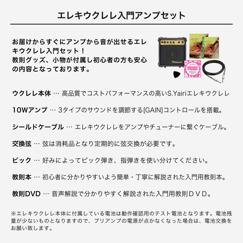 S.Yairi エレキウクレレ YU-C-01KE 入門アンプセット〔コンサート、コア材、プリアンプ、ギアペグ、ギグバッグ付属〕