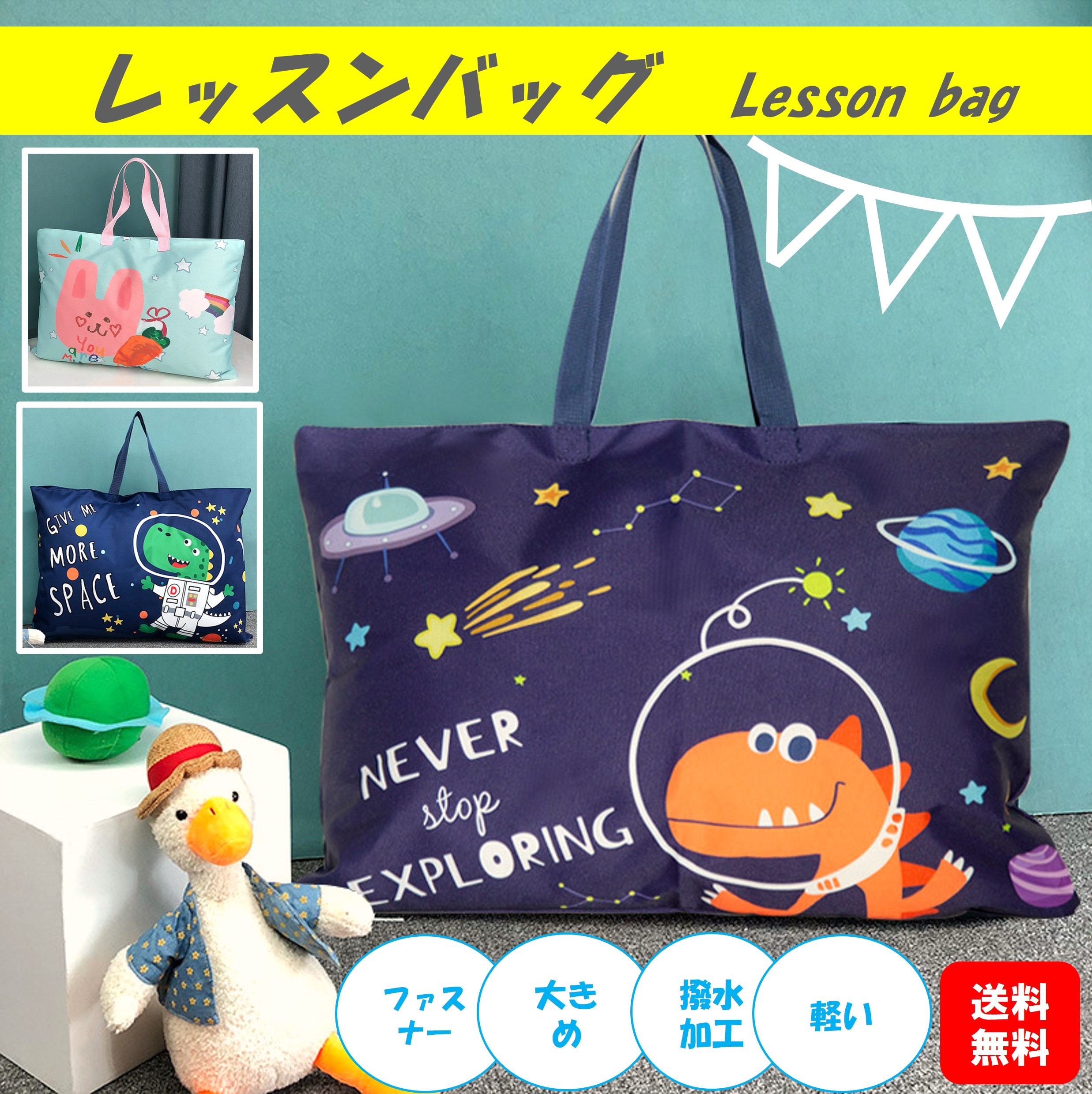 レッスンバッグ 手提げかばん 軽量 大きめ ファスナー 撥水 保育園 幼稚園 男の子 女の子 絵本バッグ おけいこバッグ トートバッグ 送料無料