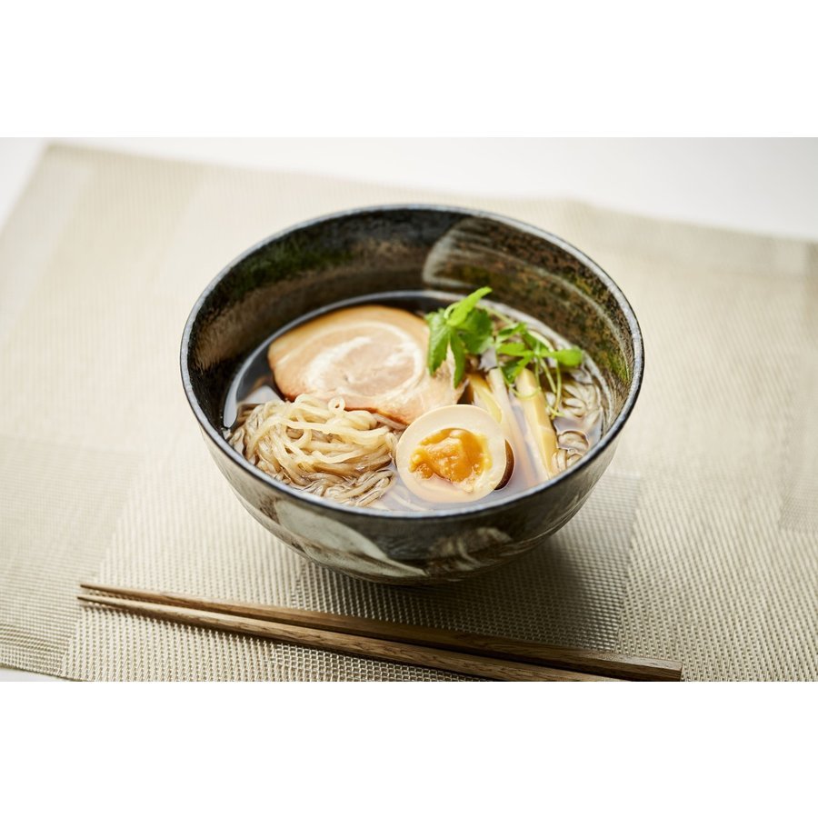 | ■栄養成分(1袋当たり) | 麺:エネルギー22.4kcal/たんぱく質1.4g/脂質0.14g/炭水化物3.78g/食塩相当量0g(推定値) スープ:エネルギー142kcal/たんぱく質4.4g/炭水化物5.7g/脂質11.0g/灰分6.1g/食塩相当量5.7g(推定値) |