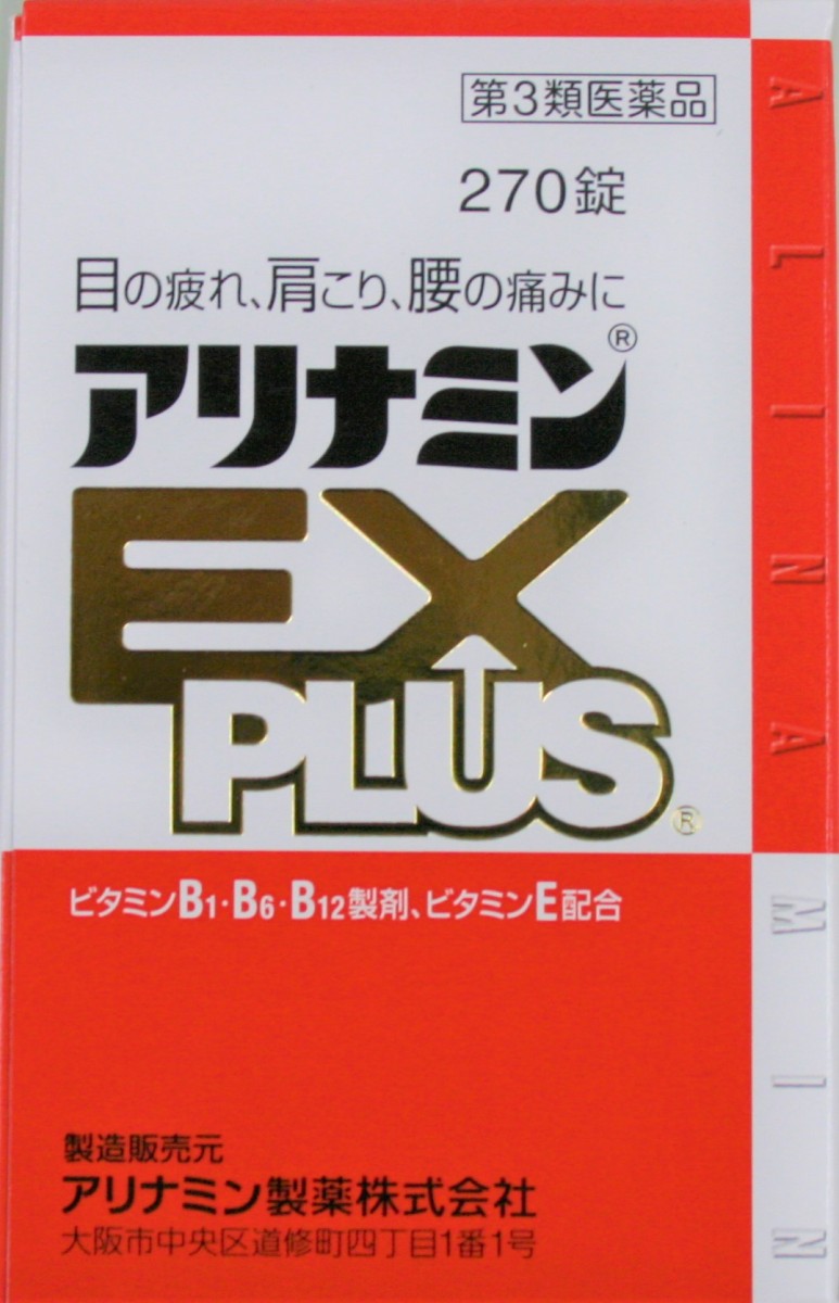 効能・効果 | 次の諸症状※の緩和:眼精疲労,筋肉痛・関節痛(肩こり,腰痛,五十肩など),神経痛,手足のしびれ。 次の場合のビタミンB1B6B12の補給:肉体疲労時,病中病後の体力低下時,妊娠・授乳期 |
