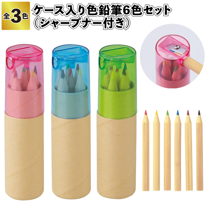 ケース入り色鉛筆6色セット シャープナー付 文房具 色鉛筆 景品 粗品 子供 大人 子ども会 幼稚園 保育園 店舗 プチ ギフト プレゼント イベント