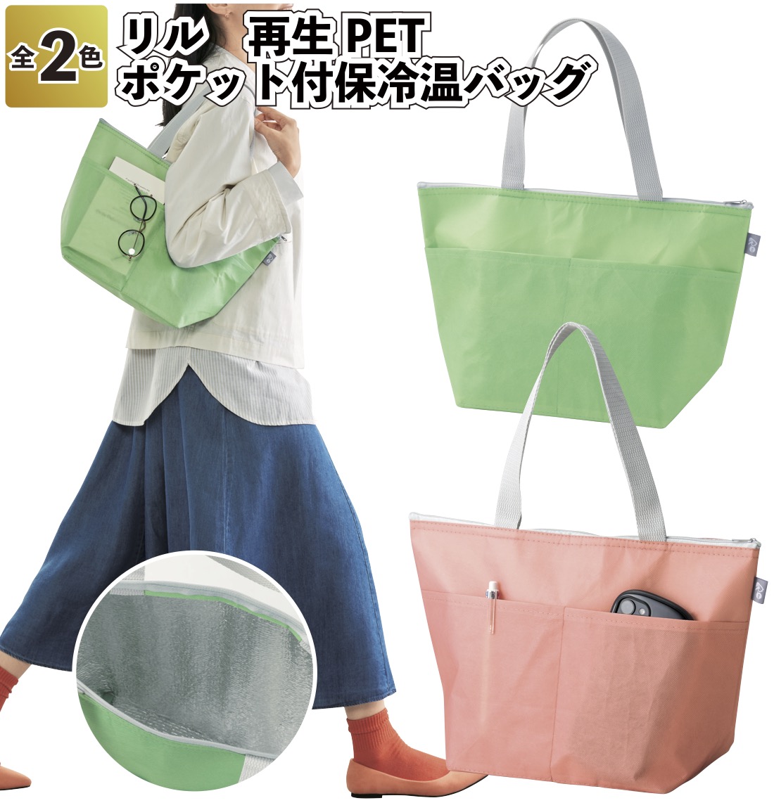 リル 再生PETポケット付保冷温バッグ 保冷温 バッグ SDGs リサイクル 外出 お出かけ 景品 粗品 ギフト 記念品 イベント プレゼント 二次会 店舗 オシャレ