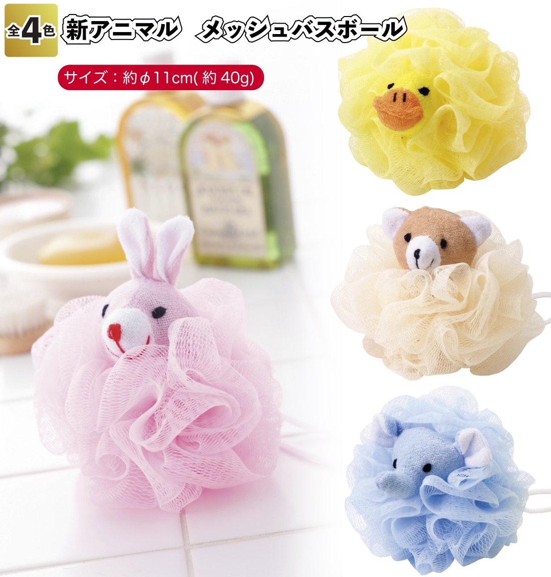 新アニマル メッシュバスボール 景品 粗品 お風呂 ネット ボディタオル イベント プチギフト