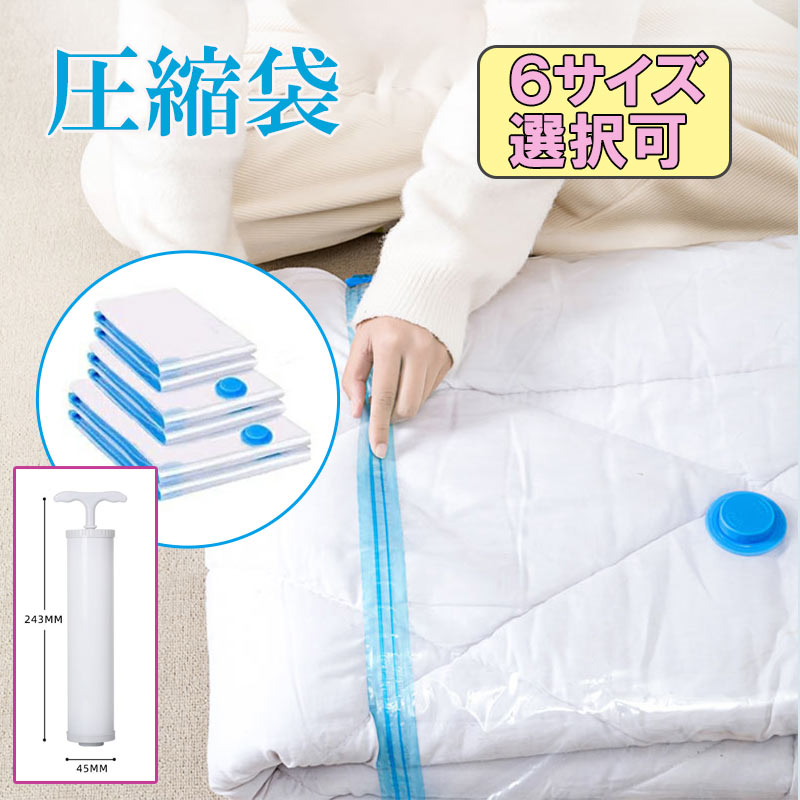 【サイズが様々】6種のサイズがあり、小さいのは普通の衣類、ぬいぐるみ、枕などが収{でき、大きいのは布団、毛布などが収{でき、数多く種類の物が適用します。布団、枕や大きめの衣類などを簡単に収め、最大75%の収スペースを省くことができます。