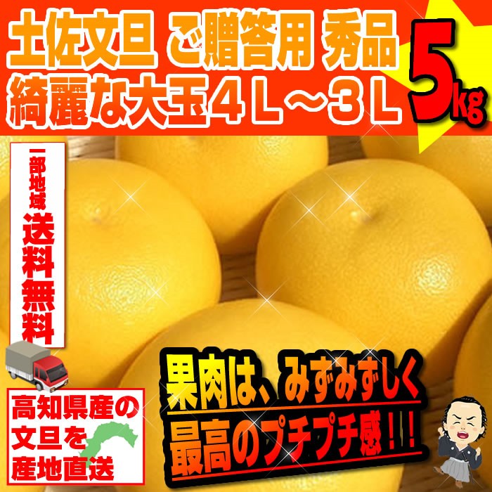 土佐文旦 ご贈答用 秀品 綺麗な大玉4L〜3Lサイズ5kg 高知産 沖縄本土と北海道は別途送料 全国の離島は発送不可