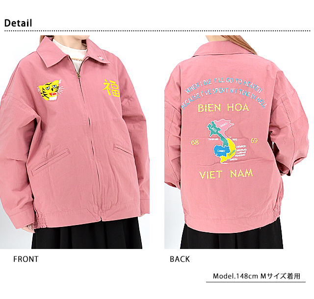 日本で初めてオリジナルのフライトジャケットを生み出し、その後も数々の国内製ミリタリー商品を製造する「ヒューストン」から「ワイドベトナムジャケット(24HL011)」のご紹介です。 レディースサイズのベトナムジャケットが登場しました! ゆったりとしたサイジングで、ワイルドに着こなして頂ける逸品です。 ボディーには、肉厚で丈夫なコットンツイルを採用。 ヴィンテージベトジャンの柄をイメージし、全体に大きくインパクトのある地図柄を採用しました。 手振り風の刺繍で仕上げられています。 フロントはジップアップ仕様。 両身頃にはポケットが縫い付けられています。 袖口には大きめのボタンを配置しました。 | ||||||||||
