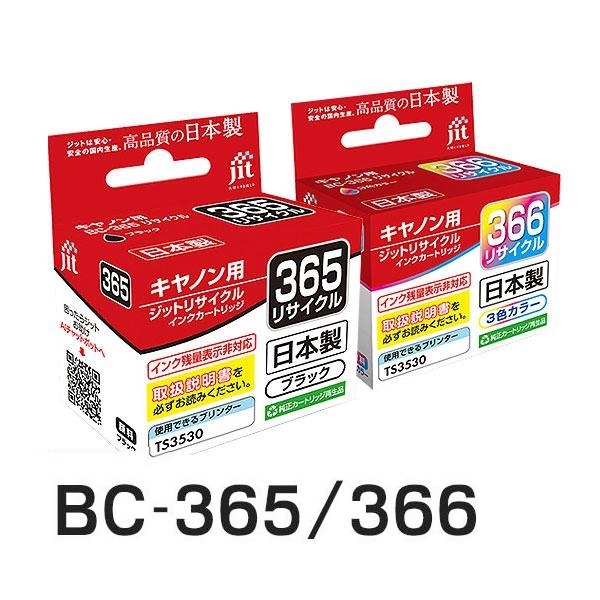 互換品 キャノン用 BC-365+366 ジッ ト 互換リサイクルインクカ ートリッジJIT-C365B(ブラック) + JIT-C366C(カラー) PIXUS TS3530 TS3730