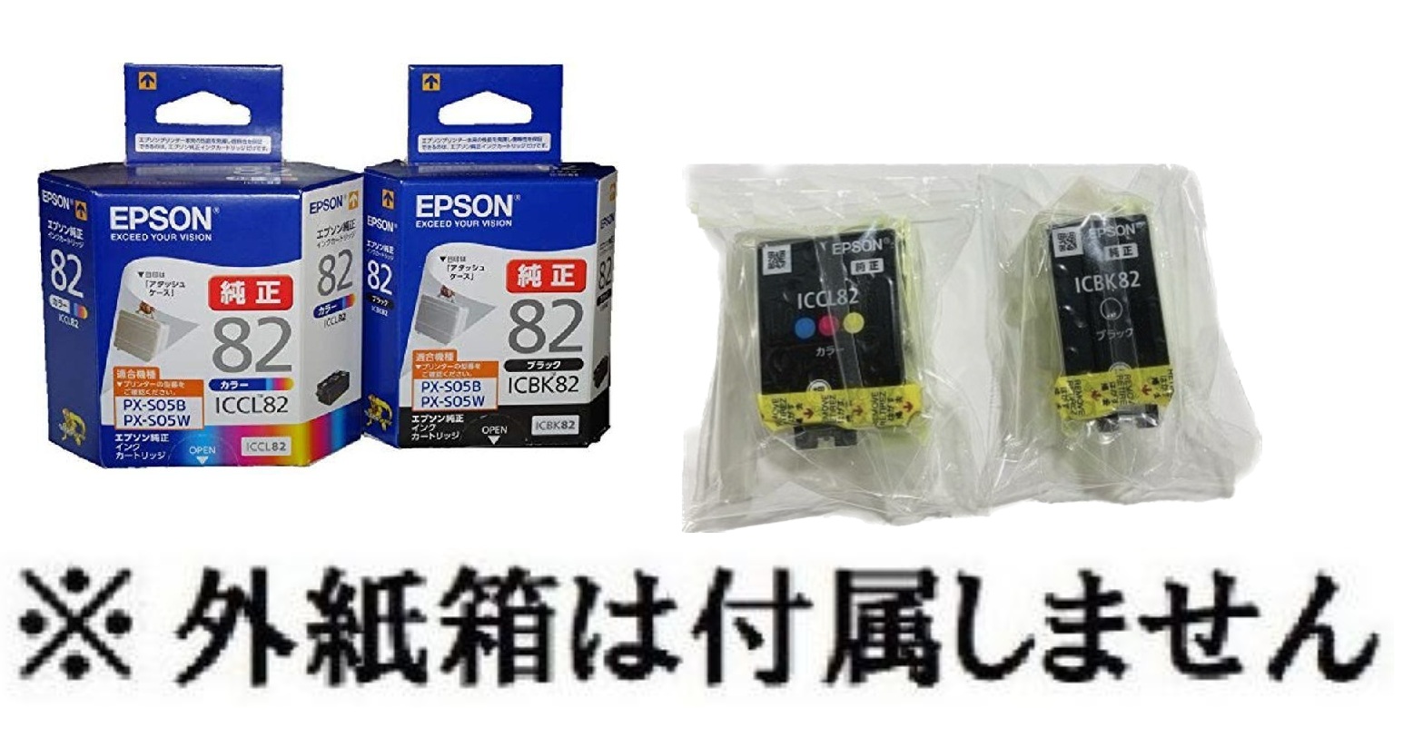 EPSON 純正インク ICBK82 ブラック+ICCL82 カラー(目印:アタッシュケース)真空パック未開封 外紙箱なし アウトレット PX-S05B PX-S05W PX-S06B PX-S06W