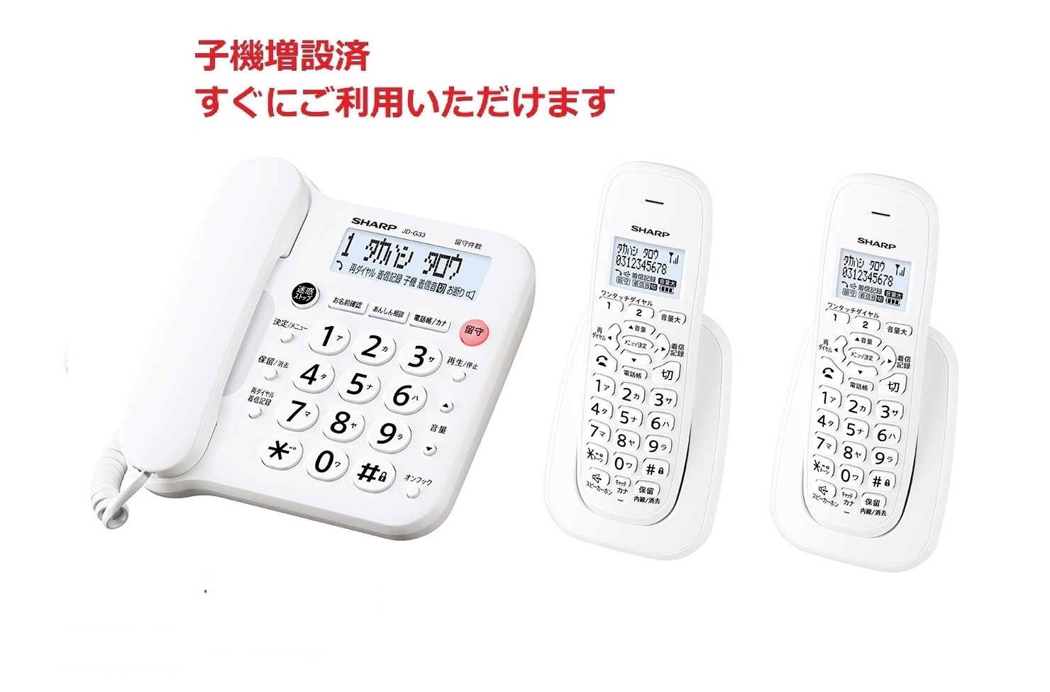 デジタルコードレス電話機 子機2台 ホワイト系 SHARP (シャープ) JD-G33CW相当品 訳あり・未使用品・子機増設設定済(JD-G32CWの後継機種)