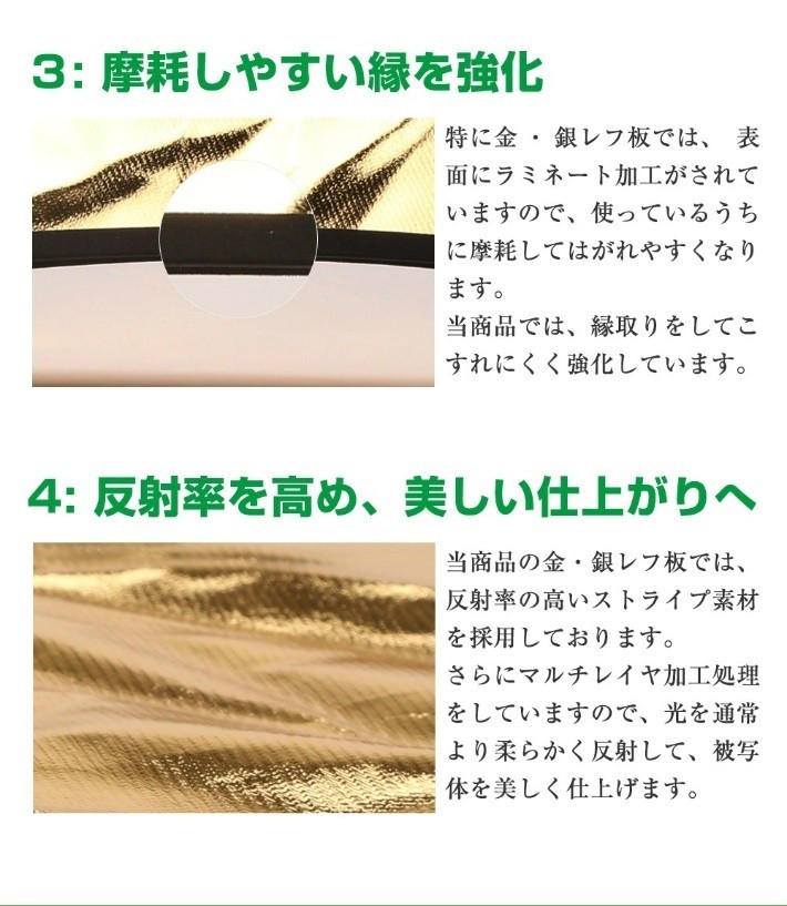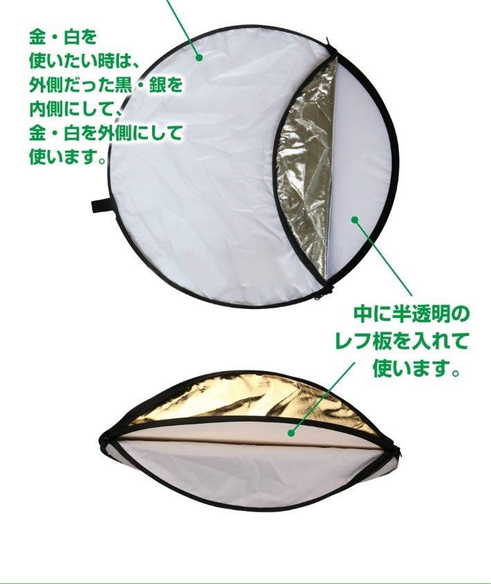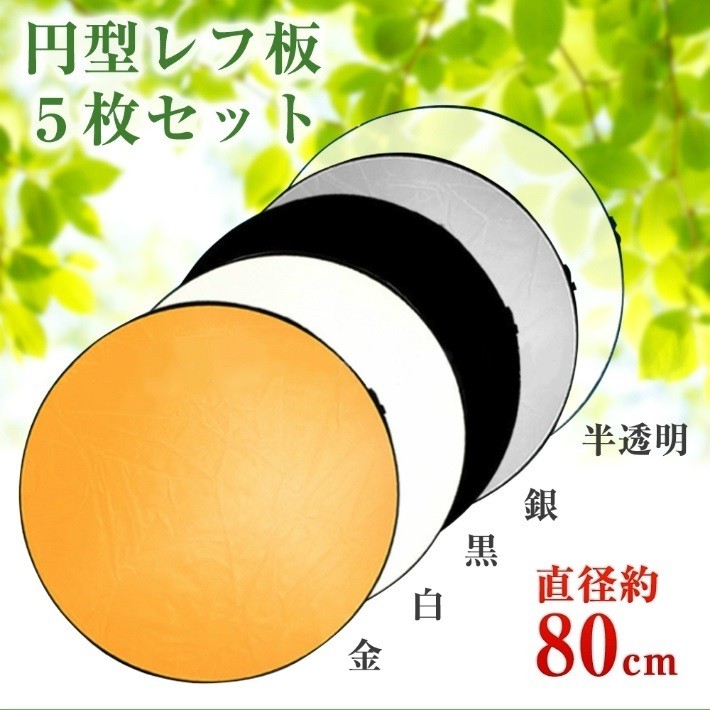 円型レフ版 5枚セット 直径約80cm 32インチ(半透明 / 銀 / 黒 / 白 / 金) 撮影用 折りたたみ 丸型 丸レフ版