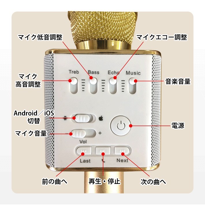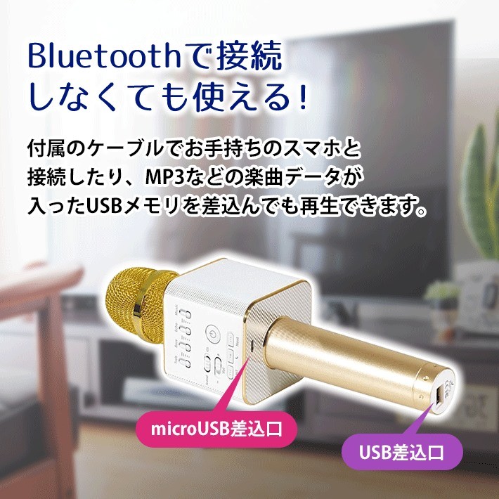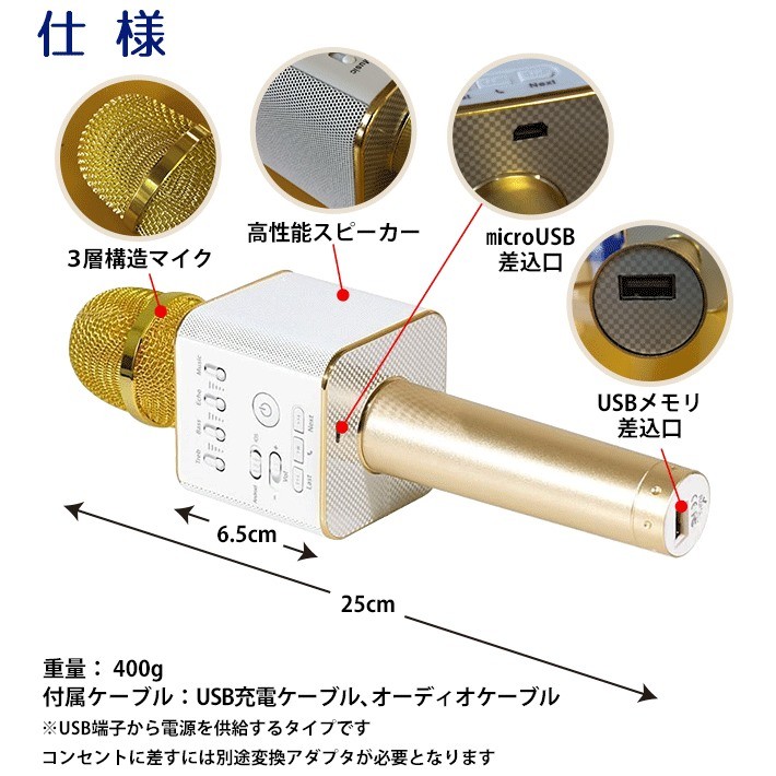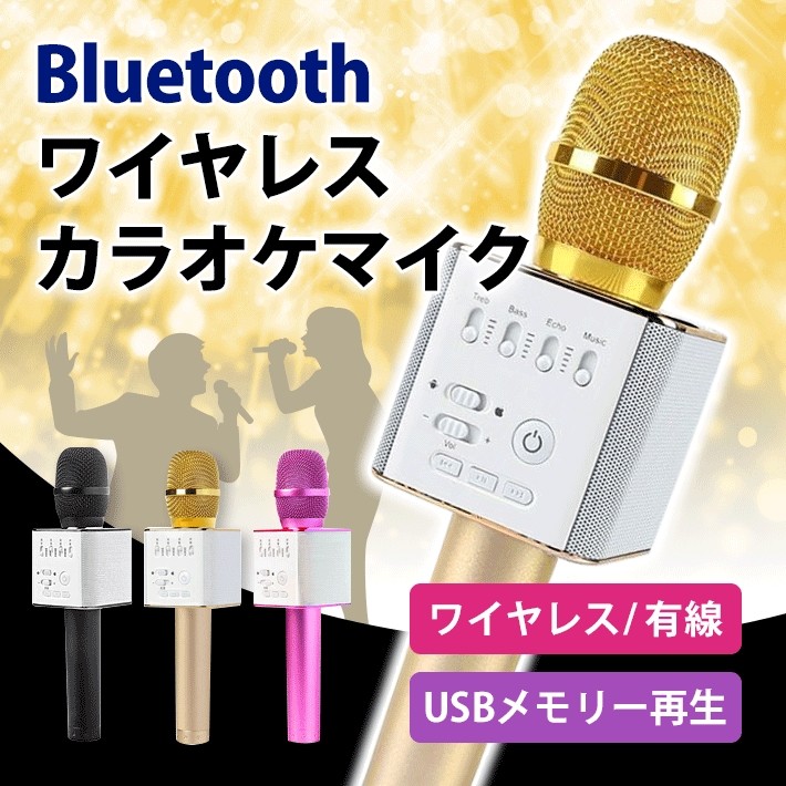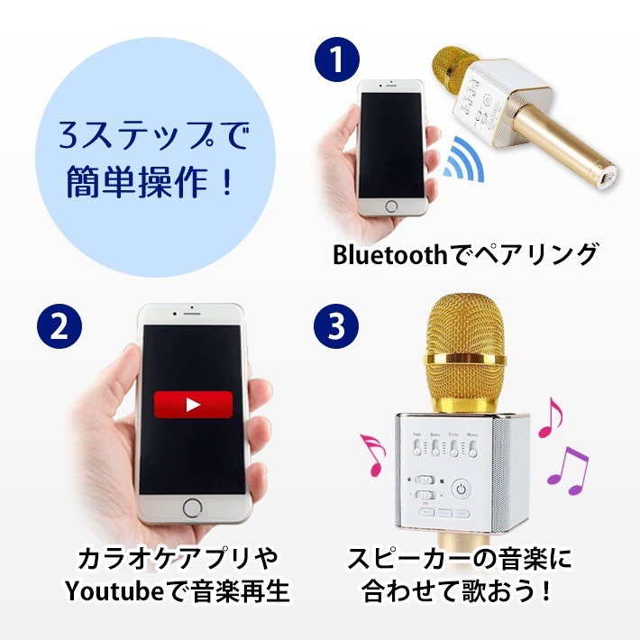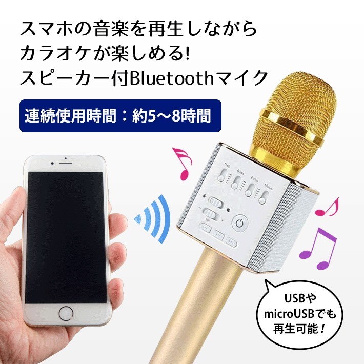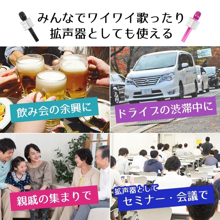 スピーカー内蔵 ワイヤレス カラオケ マイク <ケース付き> bluetooth 接続 【全3色】USBケーブル充電タイプ 家庭用 機器 パーティー