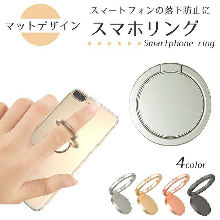 スマホリング おしゃれなマットデザイン「全4色」薄型 360度回転 スタンド機能