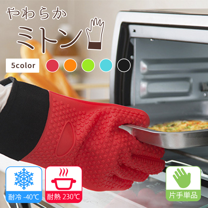 ミトン 耐熱 耐冷 シリコン 鍋つかみ 「全5色 布裏地タイプ」左右兼用:片手単品 防水 オーブンミトン キッチングローブ