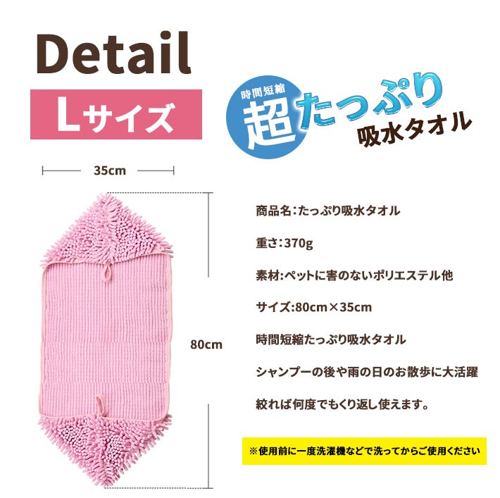 ペット用 たっぷり吸水タオル 犬 猫【Lサイズ 全4色】約80cm × 約35cm ポリエステル製