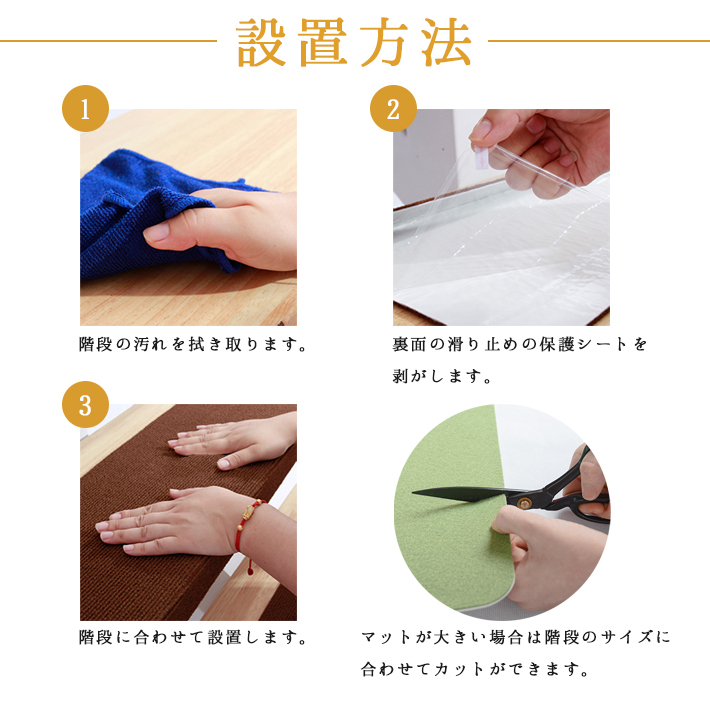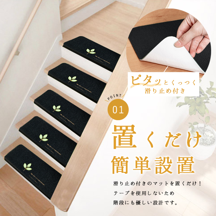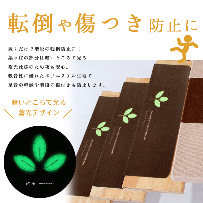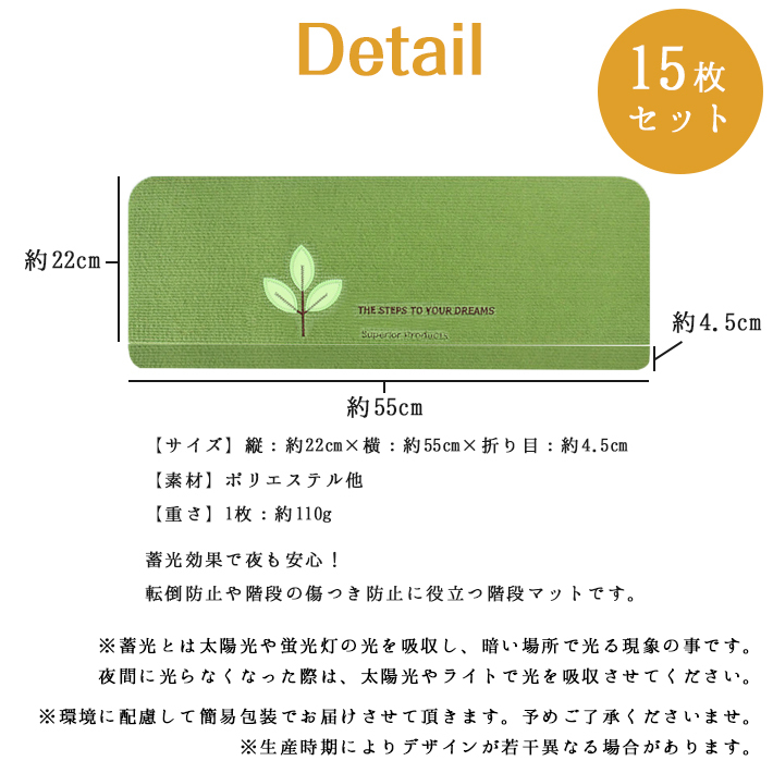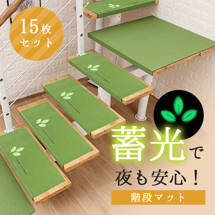 階段マット 15枚セット 蓄光タイプ【全3色】 おしゃれ 滑り止め 折り目付き 足音軽減 傷防止 転倒防止