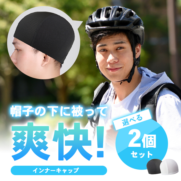 インナーキャップ 「2枚セット 選べる全2色」ウィッグ下 ヘルメット下 伸縮 男女兼用 帽子 通気性 吸汗性 速乾