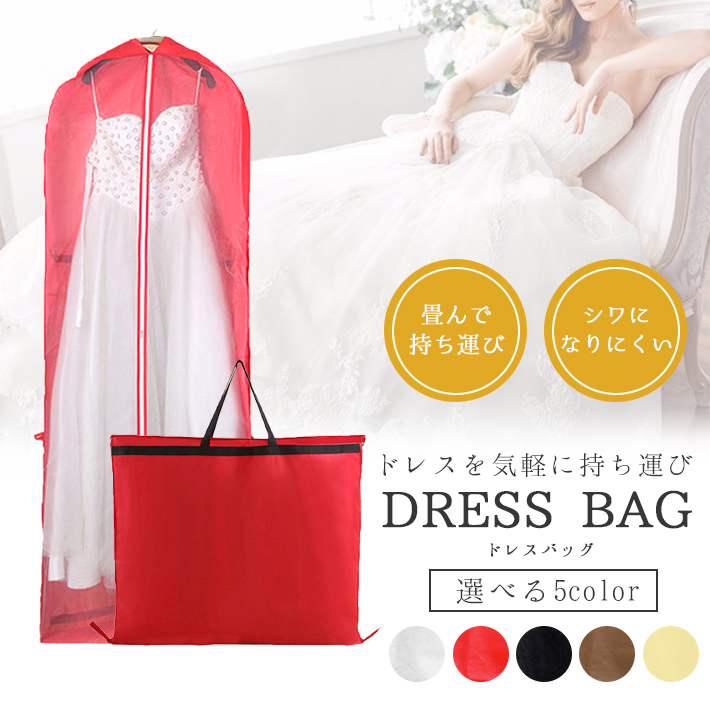 ドレス 持ち運び バッグ ドレスが入るロングタイプ180cm「全5色」 ドレスカバー ガーメントバッグ 不織布 ウエディング 収納 レディース