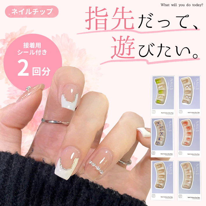 ネイルチップ 接着 シール付き 2回分「選べる6種」 ミディアム ショート スクエア 可愛い 付け爪 両面テープ付属 成人式 ハロウィン