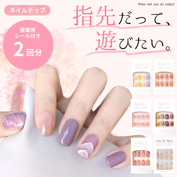 ネイルチップ 接着 シール付き 2回分「選べる6種」 ミディアム ロング ベリーショート スクエア バレリーナ ポイント 可愛い 両面テープ