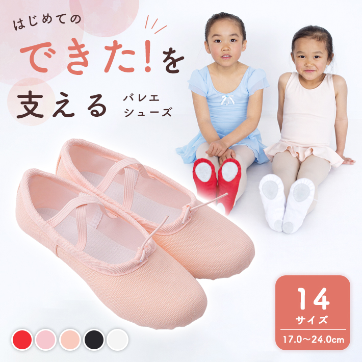 バレエシューズ キッズ【選べる5色/17-24cm】子供 ジュニア 布製 バレエ ダンス 体操 新体操 エレクトーン 練習用 初心者 発表会 ピンク ホワイト ブラック 赤