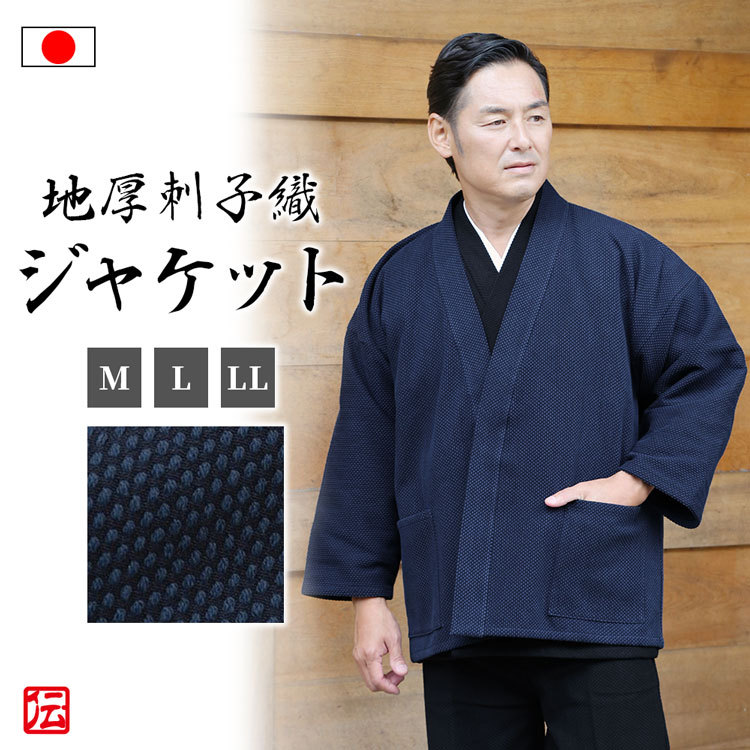 ※地厚刺子織ジャケットは作務衣より裄丈が長く作られております。 サイズをお選びいただく際は、裄丈を参考に選ばれることをお勧め致します。