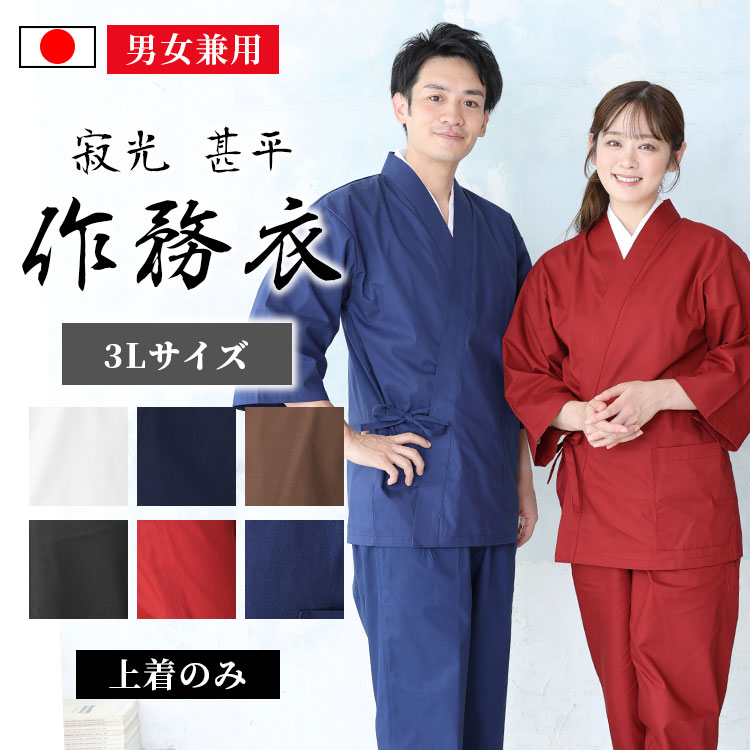 【日本製】寂光 甚平作務衣(上着のみ)(青・濃紺・黒・茶・赤・白)(3L)