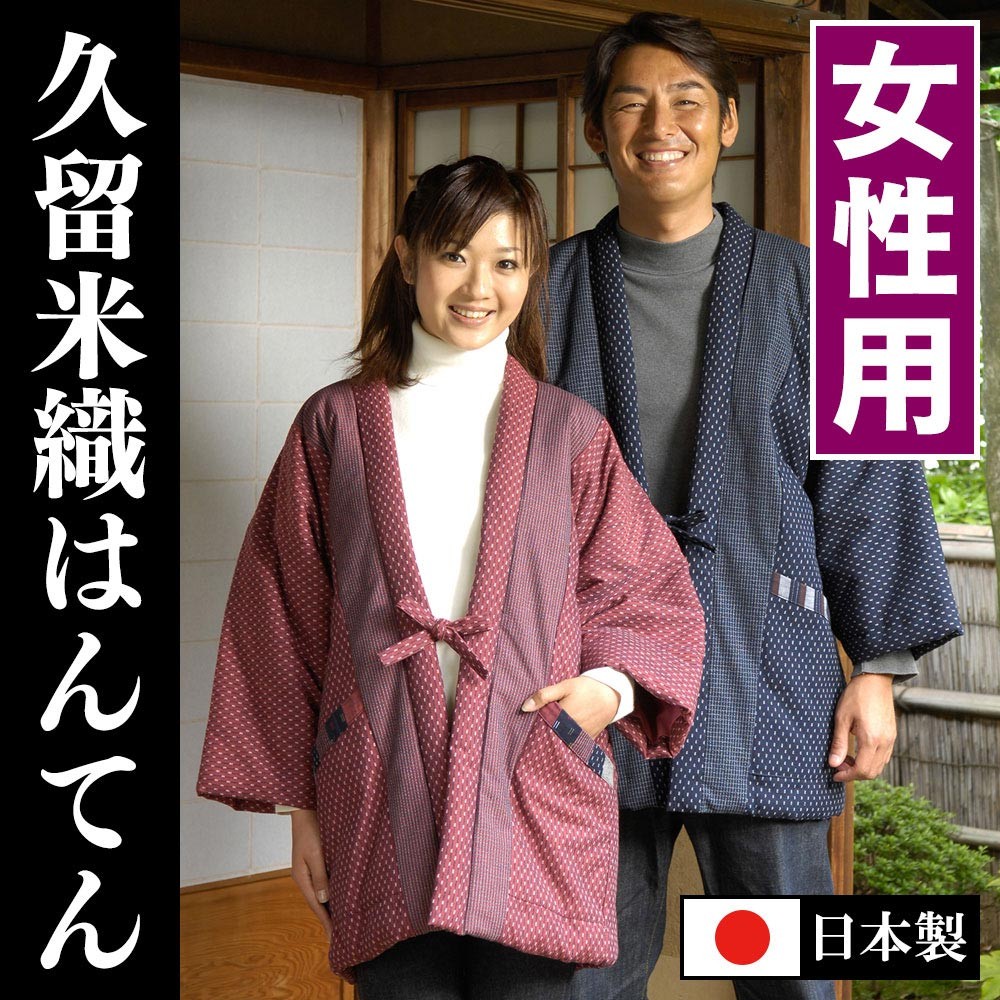 この半天は、伝統的な久留米織の生地を使用。