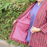 作務衣の上に羽織るだけで、暖かさはもちろん、赤色のはんてん柄が可愛らしさを演出してくれます。 今年の寒い季節はこちらの「桐生綿入り紡ぎはんてん」で温かく過ごしてください。