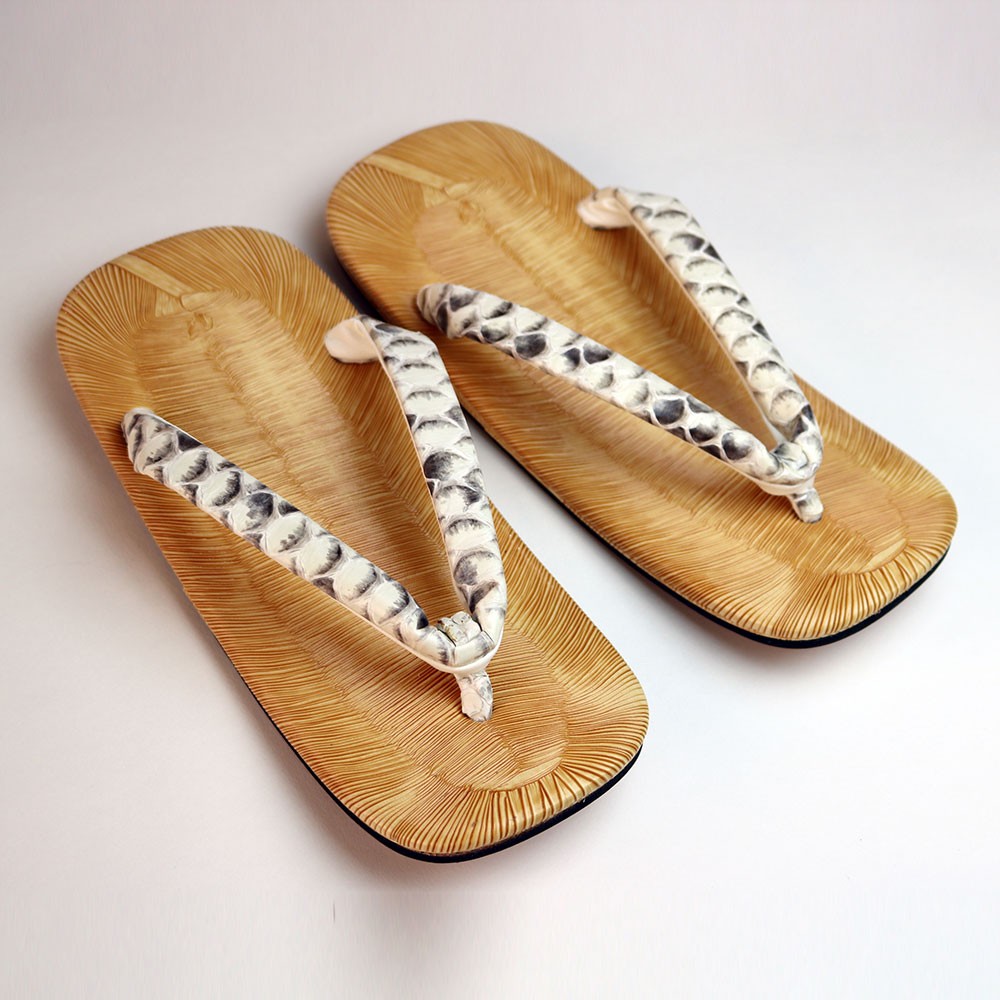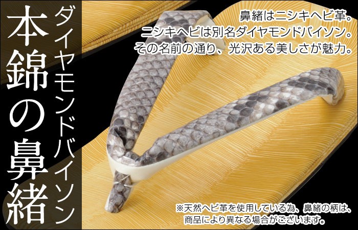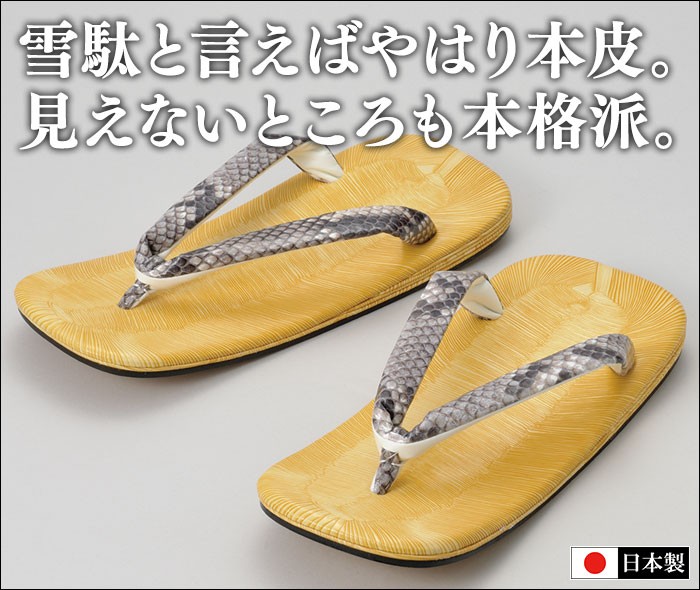 鼻緒にニシキヘビ革を使った雪駄。貴方の足元を彩ります。