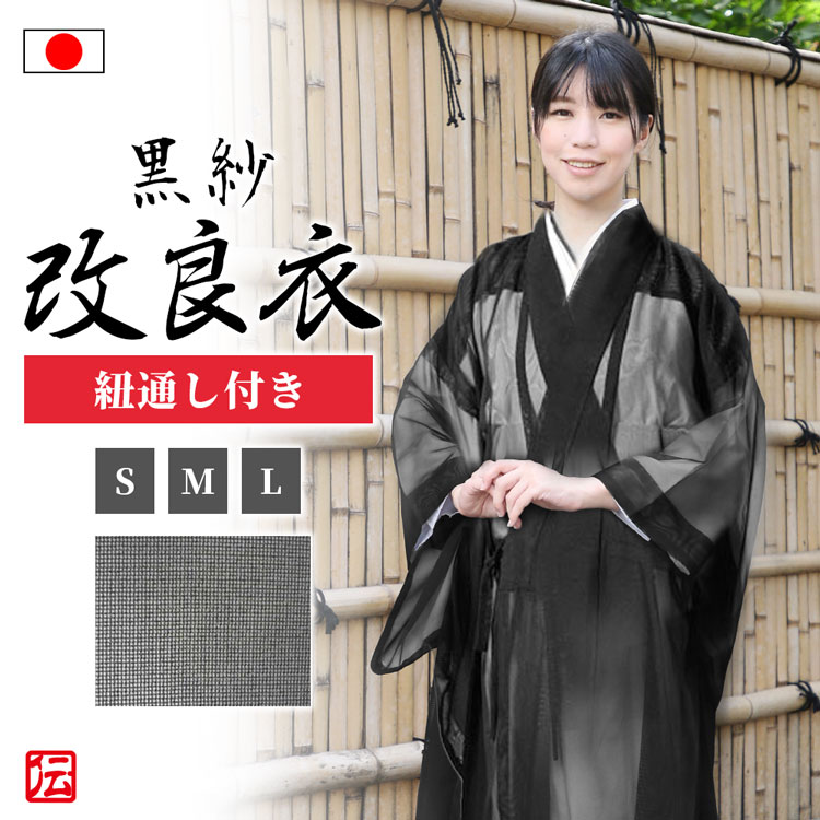 お寺様がお召しになる改良衣を、ポリエステル100%にて仕立てました。 爽やかにして艶ややかに。ポリエステル100%にて軽くてシワになりにくく、丈夫さも兼ね揃えています。 その上、ご自宅で手洗い可能。機能性に富んだ扱いやすい一着となりました。 古来から夏のお洒落の代名詞として愛されてきた紗は、目が粗く透間が多いため、通気性に優れているという観点からも、夏姿に欠かせません。 元来は薄く透き通った絹織物で作られていましたが、前述のように、お手入れの簡単なポリエステル素材を使用。 全体から発する豊かな涼感は、天然素材に引けを取らず、実に優雅な雰囲気を醸し出します。