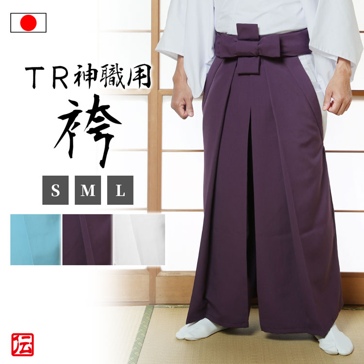 ズボン状に左右が分かれた角マチ型です。 前後の腰紐には、白の飾り糸が縫いこんであり、芯入りでスッキリと簡単に腰廻りの着付ができます。 袴止め付。ポリエステルとレーヨンのしなやかな裾さばきで、神社の神事に相応しい全国のお宮さんに愛用されています。