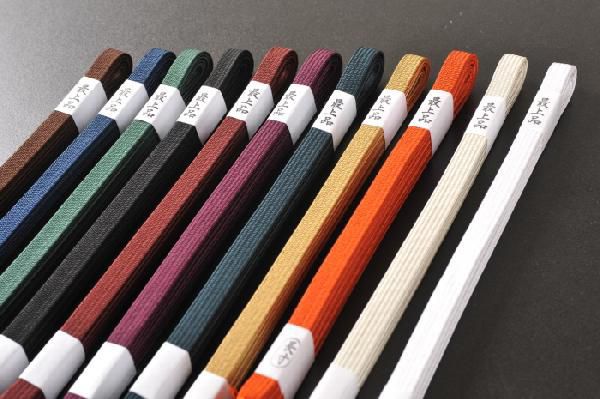 左より、茶、紺、緑、黒、ワイン、紫、鉄、金茶、オレンジ、卯の花、白でございます。