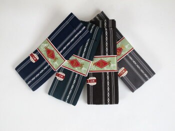 居合道用の正絹製の角帯です。西陣帯の伝統的な製法により一つ一つ手作りの帯でございます。着物用の独自のデザインですので、居合道はもちろん、武道だけでなく浴衣や着物にもお使い頂けます。色は紺、グレー、茶、深緑の4色よりお選び頂けます。 サイズ:長さ 約390cm x 幅 約9.5cm正絹100%
