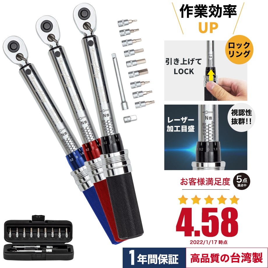 トルクレンチ 自転車 ロードバイク ロードバイク用トルクレンチ ロックリング samuriding 1/4" 6.35mm 2-24Nm 9.5mm 変換アダプタ付 SIG-T103
