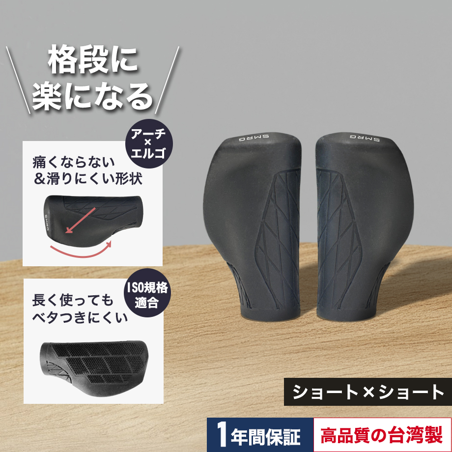 台湾製 SMRG 自転車 グリップ ショート×ショート(95×95mm) ハンドルグリップ クロスバイク エルゴグリップ MTB SR-GP-SS 左右セット