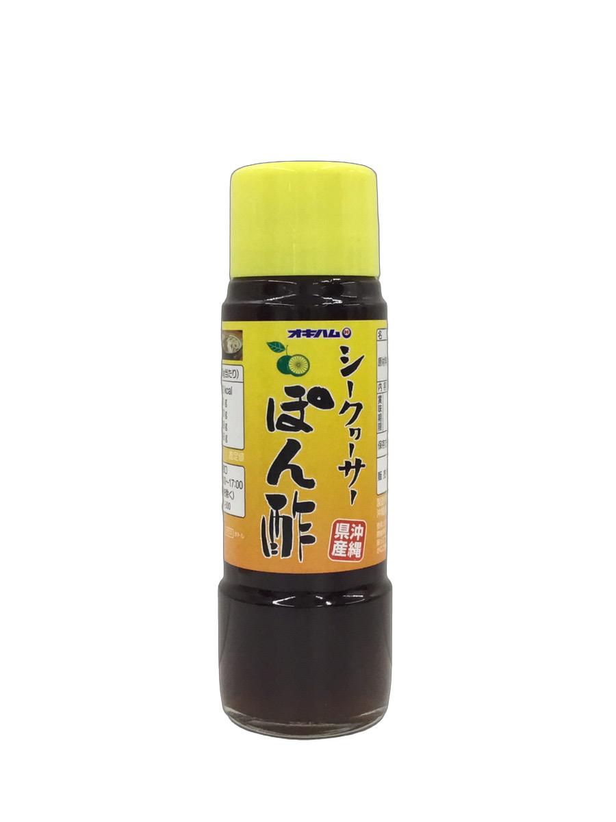 ■原材料名 しょうゆ(国内製造)、砂糖、シークヮーサー果汁(シークヮーサー(沖縄県産))、醸造酢、魚介エキス、食塩/酒精(一部に小麦・大豆・さばを含む)