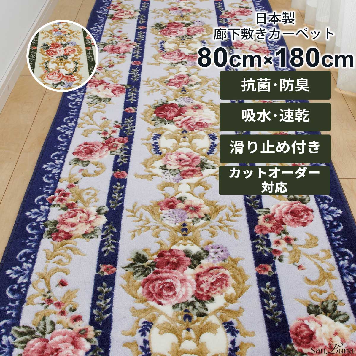 廊下 カーペット マット 80 × 180 cm 「マリア」 日本製 カットオーダー対応
