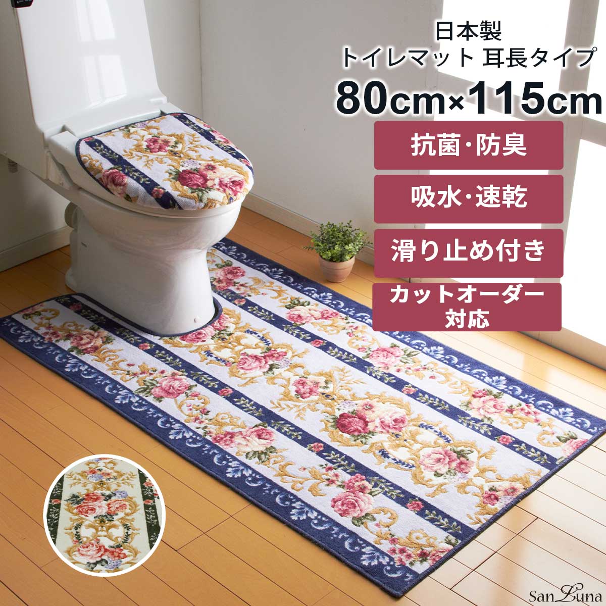 トイレマット 80 × 115 cm 「マリア」 日本製 カットオーダー対応