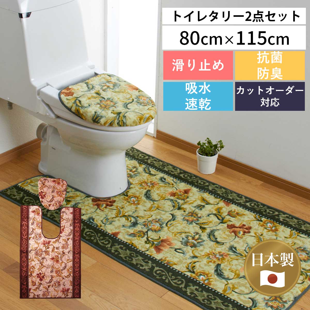 トイレマット ふたカバー セット 「オリエンタル更紗」(マット:80 × 115 cm)