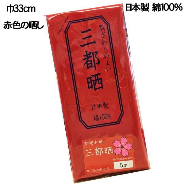 赤の晒し 小巾木綿(33cm幅 5m 反売り) 晒 赤生地 無地 手作りマスク さらし巻くだけダイエットにも