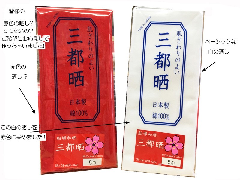他ではあまり見かけない、5mサイズの赤色の晒し木綿です!
