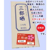 他ではあまり見かけない、蛍光染料不使用の無蛍光の無漂白の生成り綿カス付きの5mサイズの晒し木綿です!