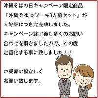 沖縄そばだし(とんこつ):素だし(かつお節、うるめいわし削り節)、ポークエキス調味料(食塩、ポークエキス、砂糖、かつお節)、豚煮付しょうゆだれ、とんこつスープ、砂糖、風味調味料(かつお等)、調味料(アミノ酸等)、(原材料の一部に大豆、小麦、乳成分、鶏肉を含む)